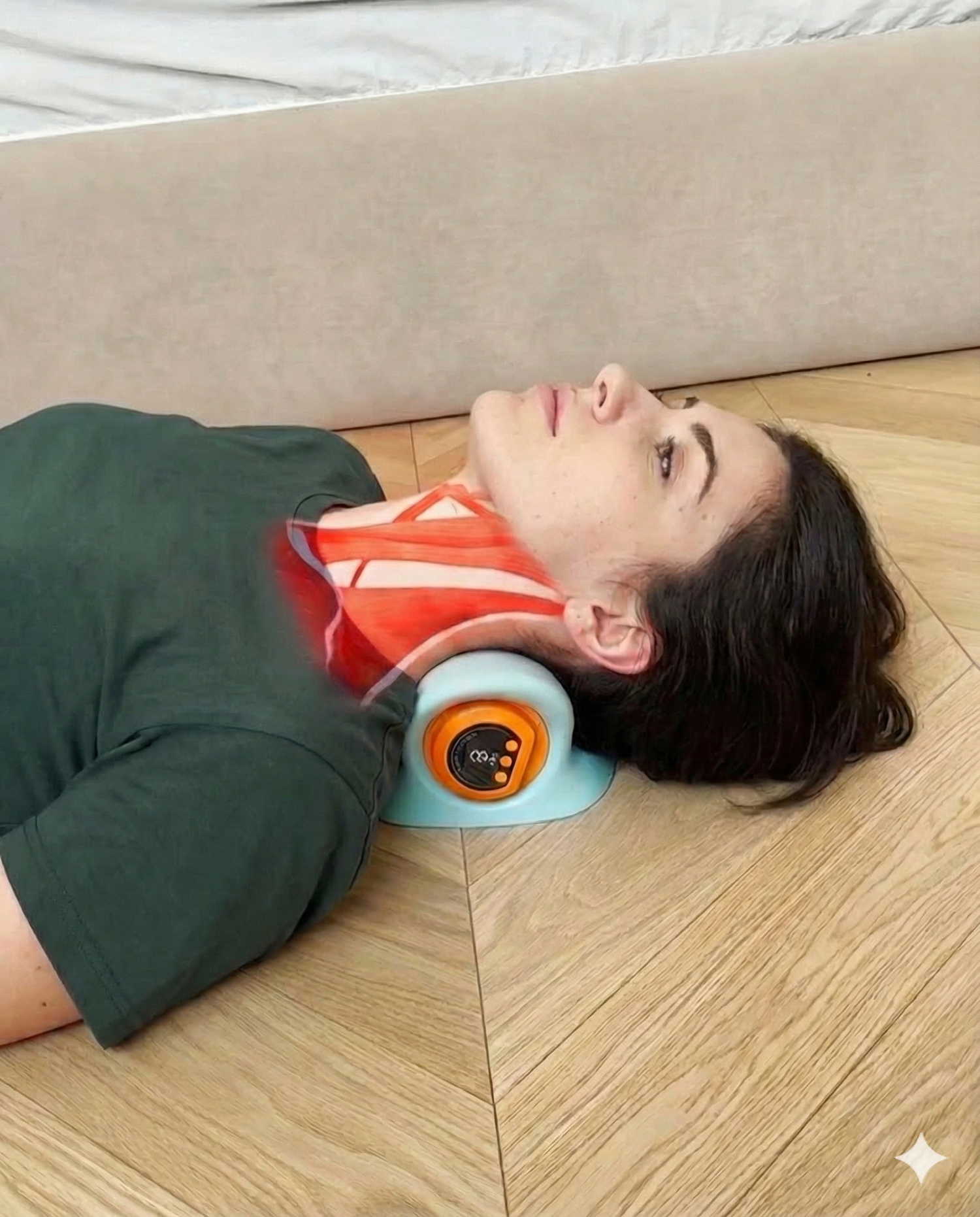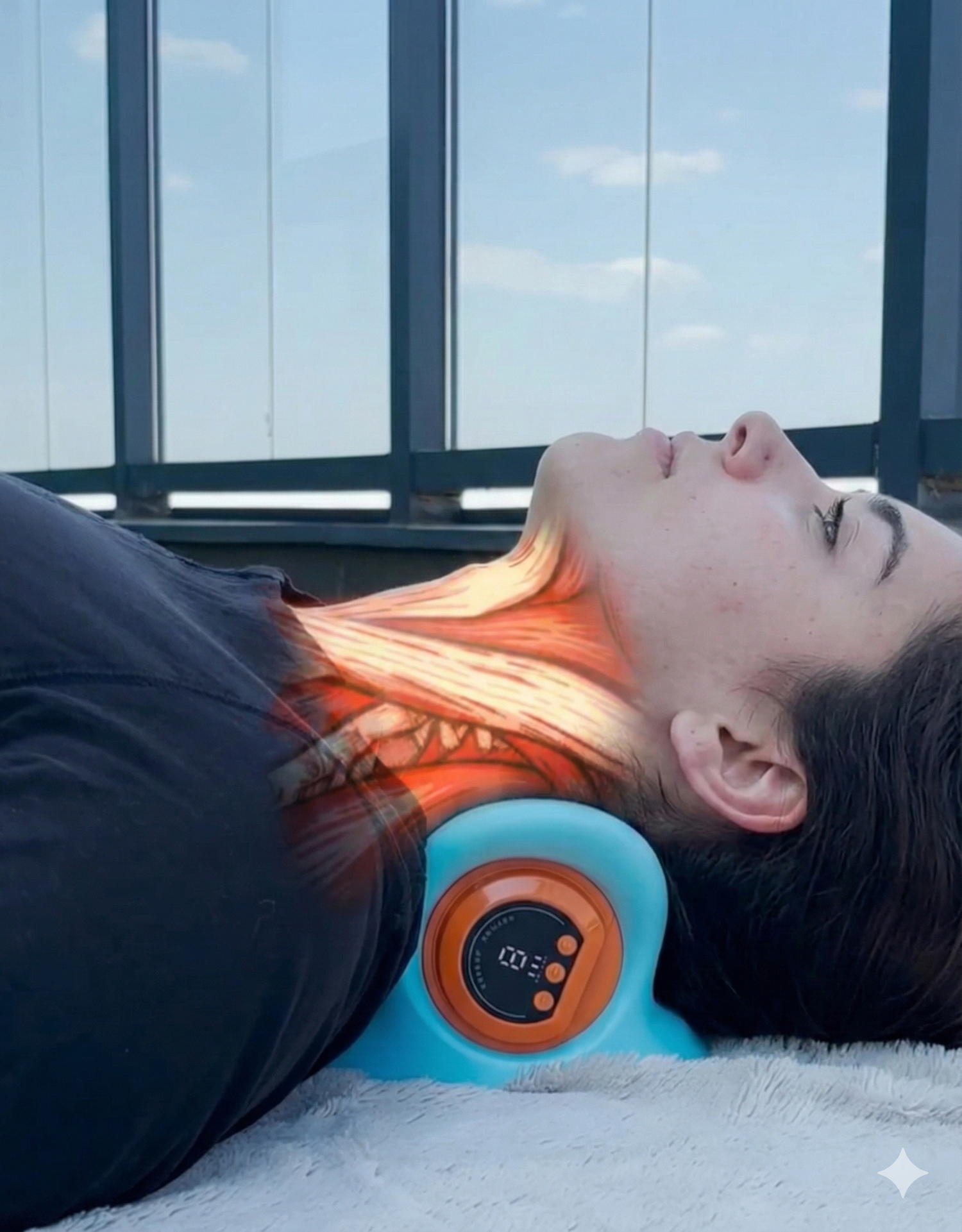 This helps release trapped tension from stressed muscles and compressed nerves, leaving your neck feeling lighter, looser, and more relaxed — so your body can finally exhale.